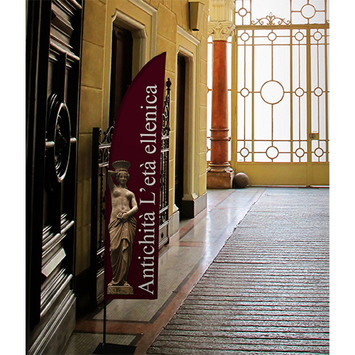 Presso il museo di piazza di S. Pantaleo 10 a Roma è stata promossa una mostra sull’età ellenica, la comunicazione dell’evento è stata affidata a bandiere a vela dislocate in vari punti della capitale.