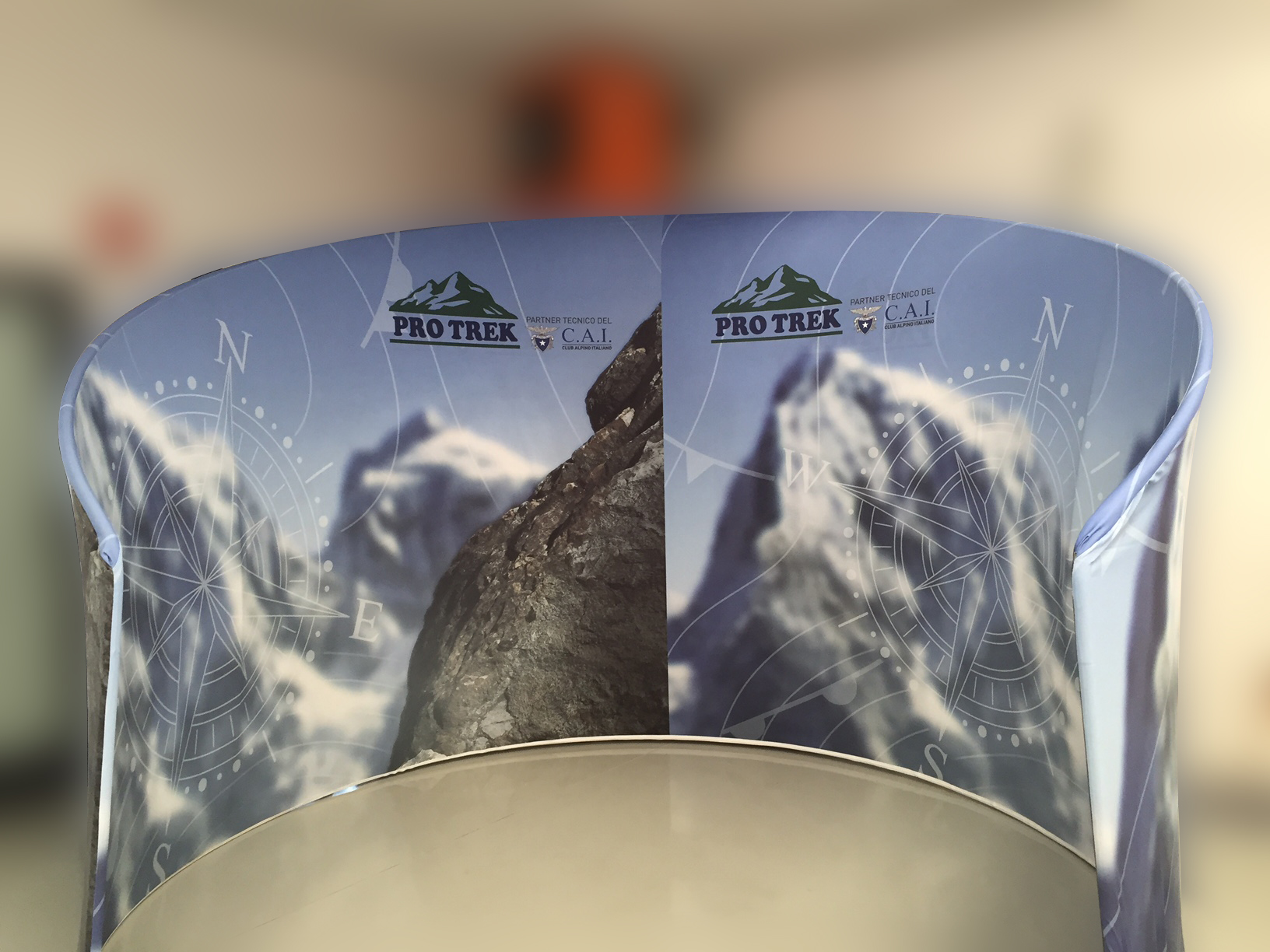 Tra le novità del soft signage troviamo WAVE FABRIC STAND; fondale grafico dalla forma a ferro di cavallo che lo rende a tutti gli effetti uno stand portatile vero e proprio.