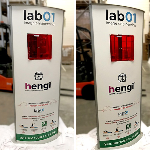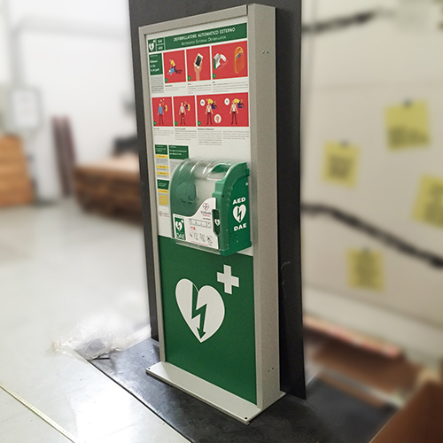 Studio Stands propone totem adattati su misura per l'installazione di apparecchi defibrillatori. Sul totem "medicale", oltre ad essere presenti le avvertenze sull'utilizzo del defibrillatore possono essere inseriti anche messaggi pubblicitari o informativi generici.