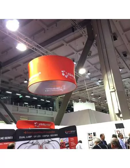 Due to their large size, the hangers are particularly suitable for installation in large spaces such as shopping centers, fairs and exhibitions/ showrooms of various kinds. These hanging banners, thanks to their elevated placement and the 360° printed personalization, create the premises for important displays with maximum impact. Once unmounted, the hanging and the corresponding print can be conveniently stored in the bag kit supplied.
