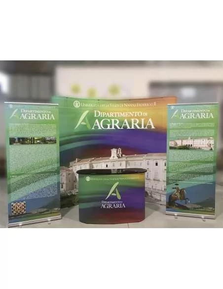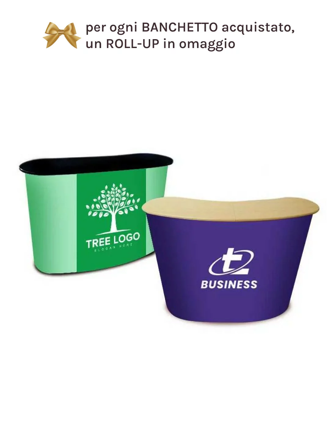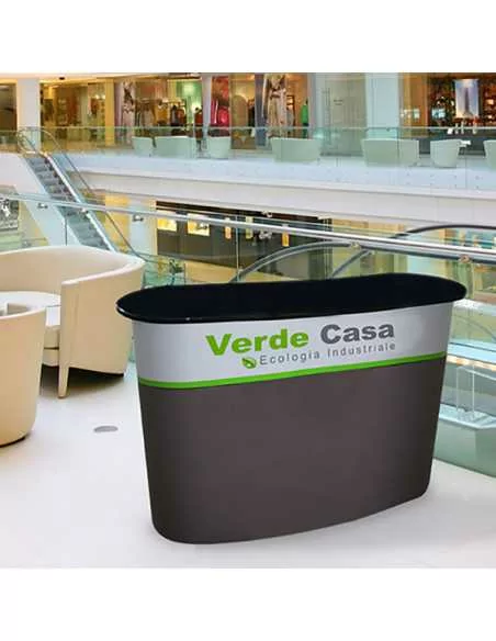 The crowner is an accessory that can be added as an option to our advertising banquets, it is a height extension of the desk designed to increase the visibility of the workstation. It is made up of a pair of tubes that start parallel from the support surface of the banquet, rising above the head of the promoter/hostess, where they are joined by a printed panel. On the website, in the web pages of the banquets that provide this option you will also find an explanatory image to view.