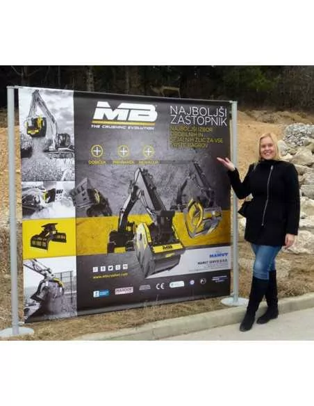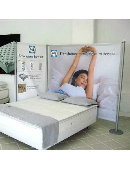 This product can be combined with prints made on non-rigid sheets (tensioned by special crossbars), or prints made on rigid panels of varying thickness. It is possible to obtain in this way innumerable graphic displays: simple single-sided/double-sided printing door, three-sided or four-sided structures, signaling indicators, backdrop, stand walls and much more.