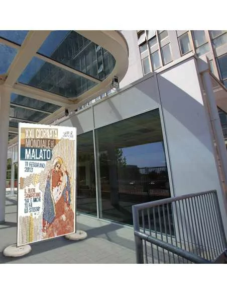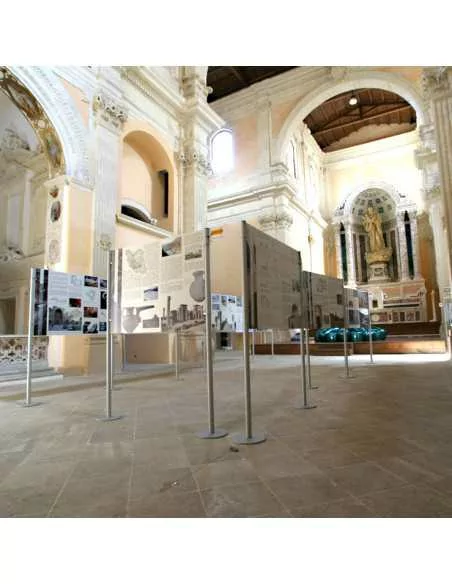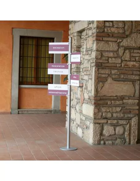 Along with the prints, the pole can be set up with other accessories (e.g. brochure pockets, shelves, shelves, spotlights, etc...).
