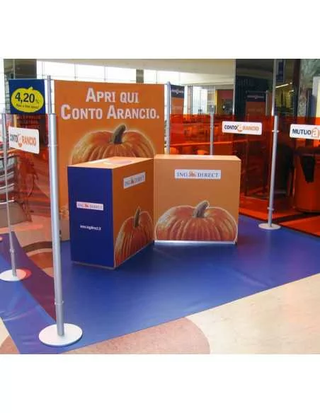 Along with the prints, the pole can be set up with other accessories (e.g.: brochure pockets, shelves, shelves, etc.).