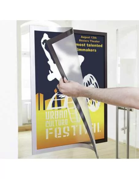 Duraframe inlarger sizesis perfect for the display of advertising posters, the great visual impact is enhanced by the possibility to renew the graphics easily and quickly. It is non-reflective and protects from UV rays for proper readability of the printed message. Video 1