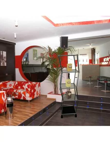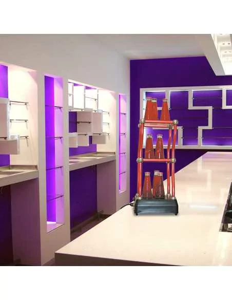 220V power supply; its oscillation (13 rpm) makes your displays impossible to ignore. Available in aluminum gray (other colors available for quantities).