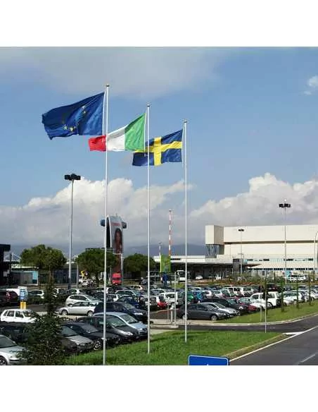 The flagpoles are flagpoles designed to be anchored to the ground in a special reinforced concrete base. For this reason they can be permanently placed outdoors even in extreme environmental conditions.