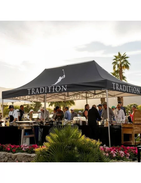 Markets, festivals, fairs, village parties and outdoor events are among the main contexts of use. It is also suitable for uneven terrain thanks to the telescopic legs.