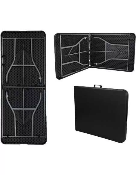 Folding table, composed of metal structure and top in polypropylene. The open bench measures cm 185Lx75Px75H and is more spacious than the usual portable advertising stands. Once closed, it has a small footprint, cm 75x94,5x9, easily transportable thanks to the appropriate handle.