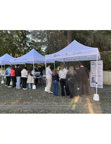 Gazebo for advertising events, quick to install and disassemble (without tools) thanks to the pop-up system. The Economy Gazebo, compared to Gazebo closable aluminum, is an advertising cover made of iron alloy, with legs having square section, designed to contain the costs