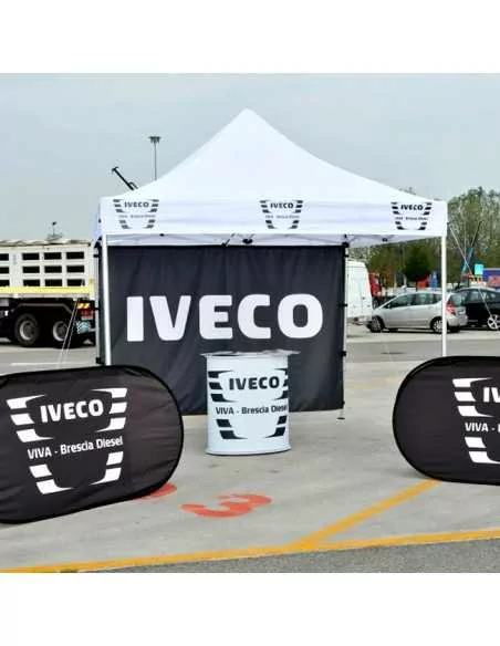 Advertising gazebo immediate to assemble/ disassemble (without tools), made entirely of aluminum for maximum strength and lightness.