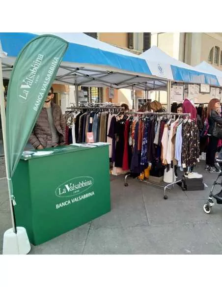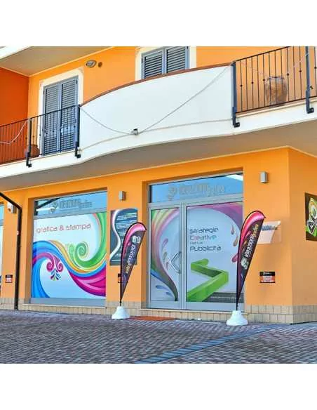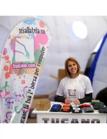 Flags are effective tools for visual communication, be it advertising, information or institutional. They are current, practical, versatile and increasingly appreciated by those who need greater visibility for the promotion of products, services, brands etc. These displays capture the attention thanks to a wide variety of formats, even important (ranging from flags with measures under 2 meters high up to solutions that reach 12 meters) and the various and original shapes available. The Goccia 1 flag model with its modern and particular drop shape certainly does not go unnoticed. It is an exhibition solution that guarantees an effective visual impact attracting the eye thanks to its dynamics and particularity. Our flags are also suitable for outdoor use, having the possibility of implementing ballasted bases and being characterized by a robust structure, it is still advisable to withdraw them in case of particularly adverse weather conditions. These display solutions (Eolo, Eolo Big, Vela, Maxivela, Goccia1, Goccia2, Pitagora ...) are mainly designed for events thanks to their portability and the ease of assembly that characterizes them.
