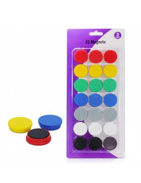 - MAGNET KIT: High-strength adhesive magnets for Magnetic Board Plus, ideal as temporary paper clips. Diameter 30mm. Kit of 21 magnets in 7 colors.