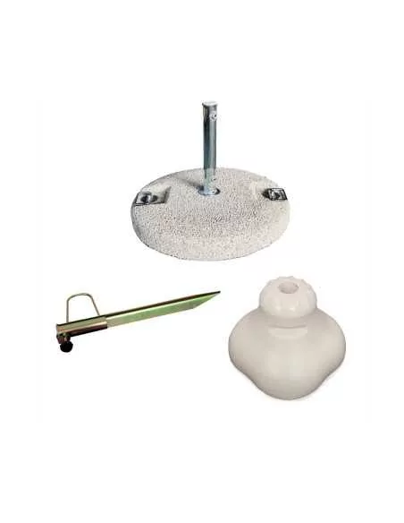 Several pedestals available. Pagoda Umbrella can also be equipped with a custom wall to increase the print area dedicated to visual communication (it is recommended to anchor the wall at the bottom by means of pegs or counterweights).