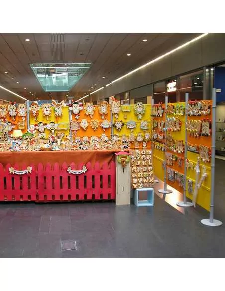 These stands are frequently furnished with desk banquettes and portadepliant display units (also transportable) to complete the setup of the station. The exhibition picture can be completed with custom flooring, product display units, seats and other accessories.