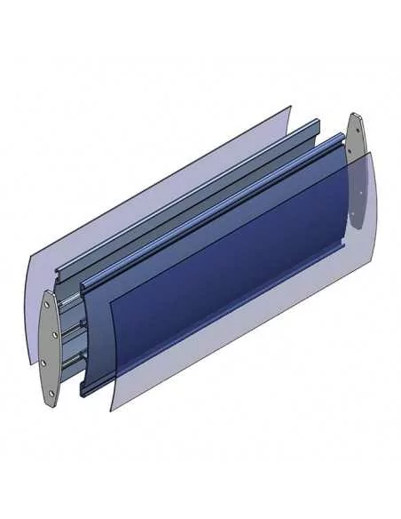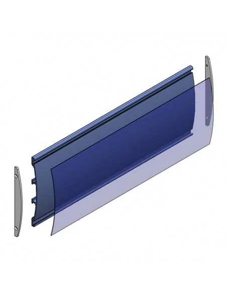 The signage kit includes the aluminium profile cut to size, the side caps, the transparent protective film and for the two-sided versions there are hooks for hanging or the flag attachment for wall mounting.