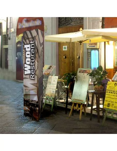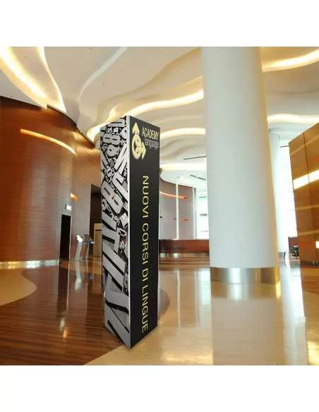 The printing of Prisma takes place directly on the polypropylene panel that makes it up, for the graphic change you should apply a new print made on adhesive film but the costs make the operation impractical. If you need three-sided displays with frequent graphic changes, the advice is to orient rather on the models Trio (with prints on flexible materials) and Tris (accessorizable with sandwich panels).