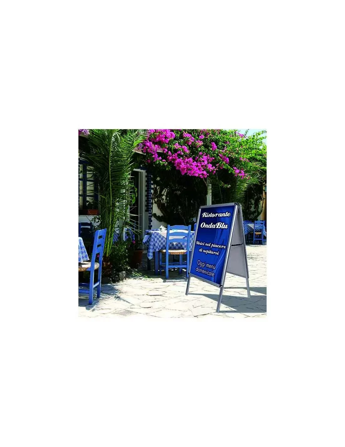 Graphics easily interchangeable thanks to click-clack frames of which the product is equipped.