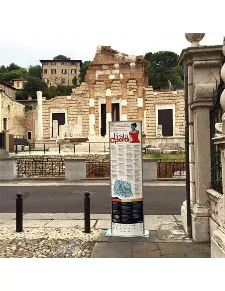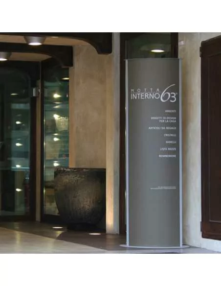 These are vertical metal structures completely removable, on which to fix advertising panels (usually in aluminum, forex or plex opal for the light versions) inserting them into the side channels present on the pillars of the totem.
