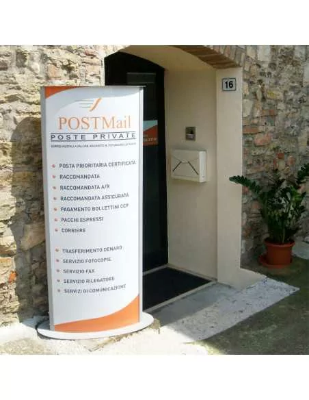 In case of frequent press changes, it is also possible to mount a "sandwich" panel on the totem: this is a neutral forex panel combined with a transparent protective panel.