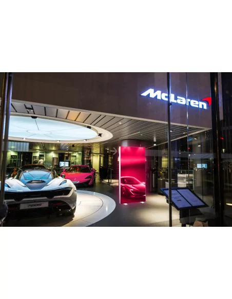 This display mounts on board a series of LEDs for backlighting. The totem has a plug to connect to classic electrical outlet.