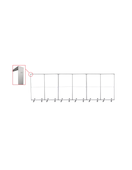 Self-supporting textile frame, with immediate assembly thanks to the pop-up system. It is a luminous totem, backlit thanks to pre-installed LEDs. Using the magnets on the sides it is possible to connect multiple modules together to obtain bright backdrops.