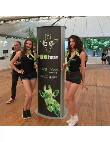 On both totems, in case of frequent press changes, it is also possible to mount a "sandwich" panel: this is a neutral forex panel (opal for the led version) combined with a second transparent protective panel. This pair of panels is printed on paper or backlight, materials that allow you to amortize the costs of reprinting.