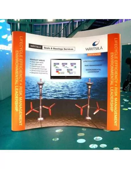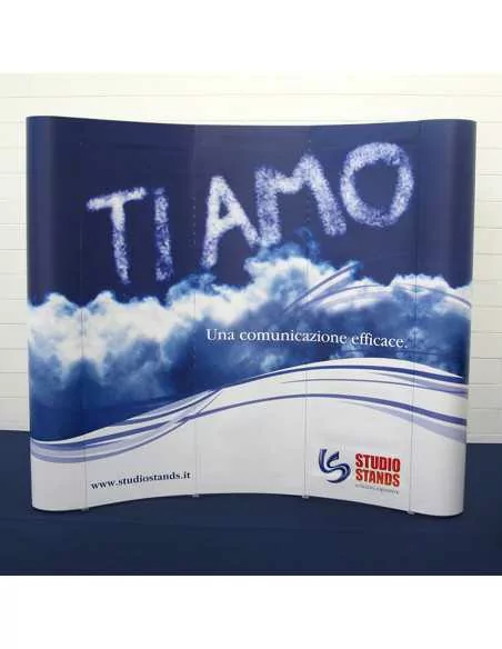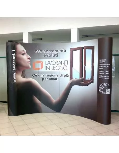 The graphic background Wall is a modular product and for this reason its dimensions are quantified in modules. A module measures about 70x70 cm (in height there are 3 modules, in width the number of modules is variable and depends on the extension desired by the customer for the Wall pop-up display ). For more precise information on the dimensions of the display, please consult the corresponding instruction sheet that can be downloaded on the dedicated page. Our sales department is however available to advise you the most suitable version for your needs.