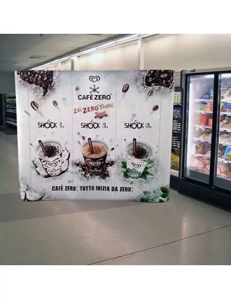 In general, each display can be adapted to a variety of printing materials; our sales department is able to recommend the most suitable support for each product. In particular, with regard to the graphic background Wall the advice is to opt for rolling materials but at the same time with the right consistency as light barrier or stop light.