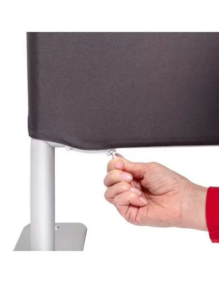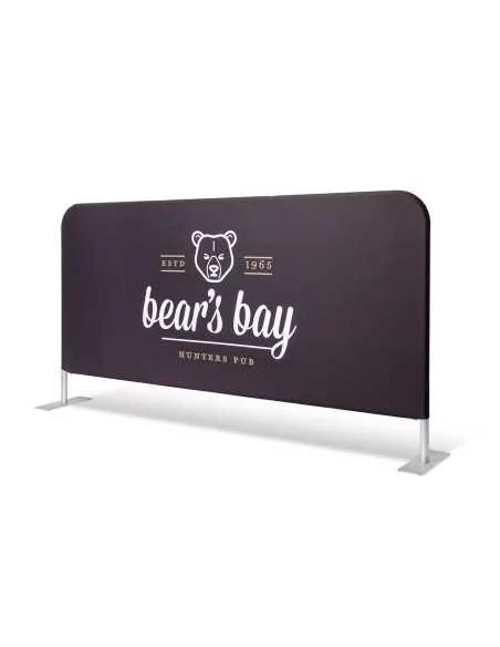 Advertising barrier, with aluminum frame, simply assembled by interlocking. Measurements: 206l*x107hx36d cm (*footprint considering the bases)/ 5kg.