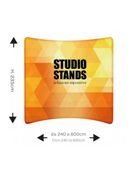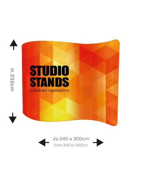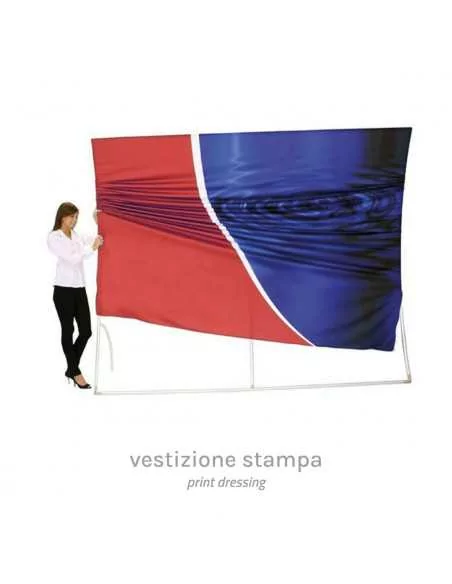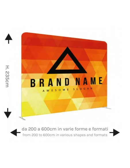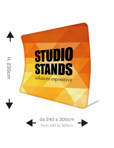 Freestanding graphic backdrops, in aluminium, for the creation of custom walls, straight lines or curves.