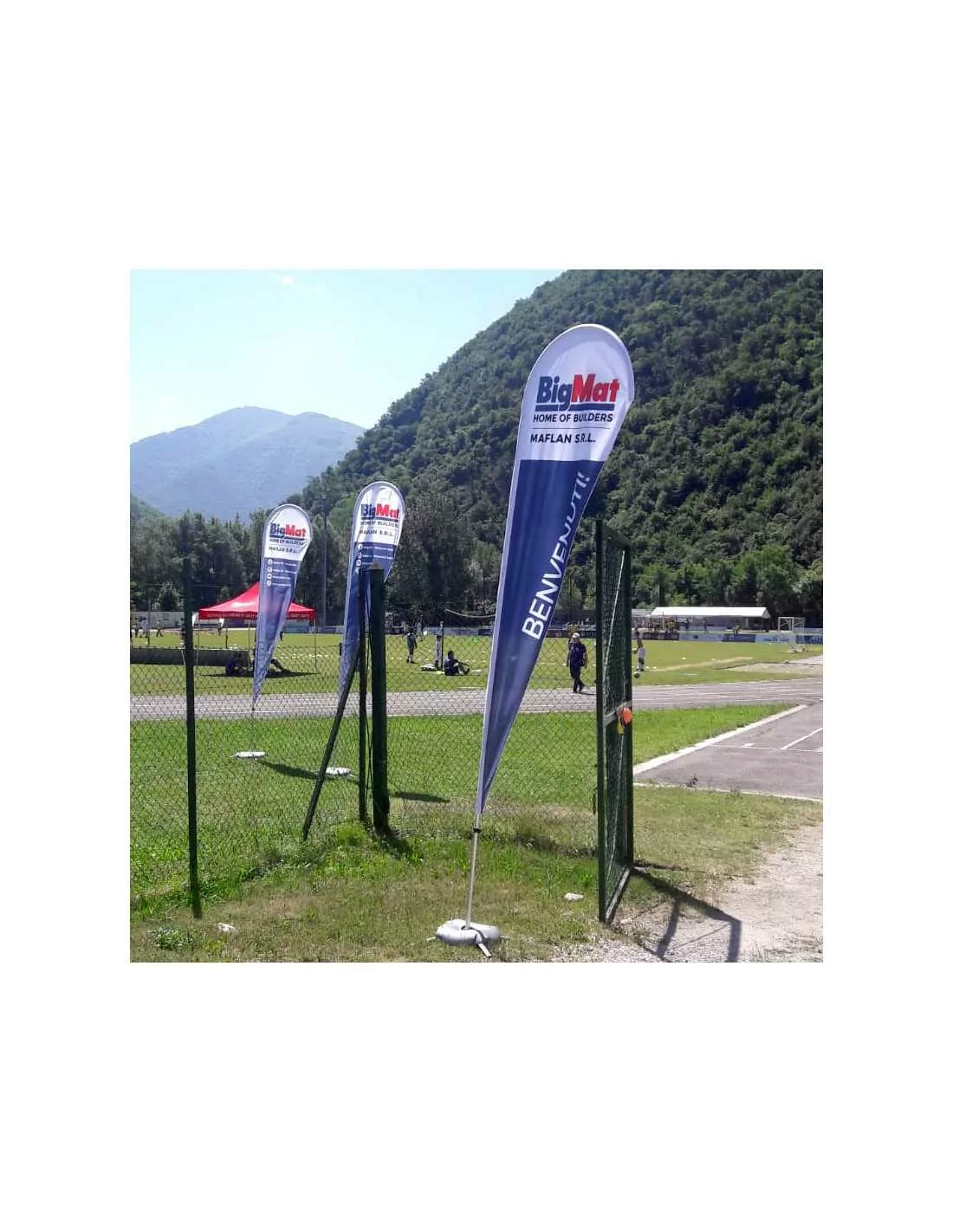Bandiera a goccia autoportante completamente in alluminio componibile.