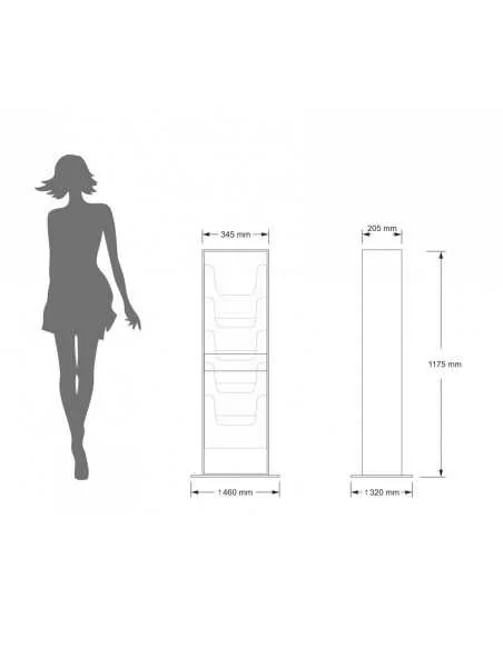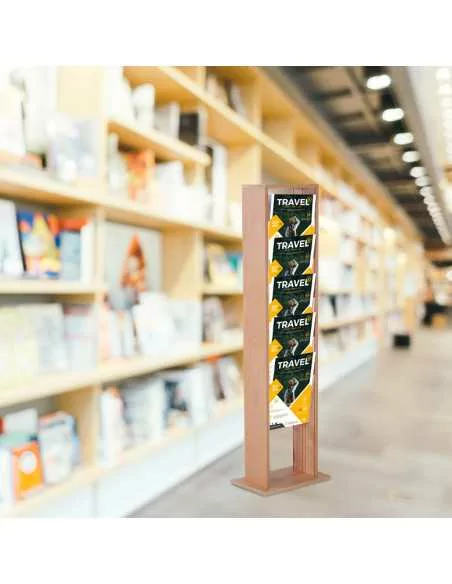 Torretta portadepliant bifacciale, in faggio al naturale con tasche in pet trasparente formato A4.