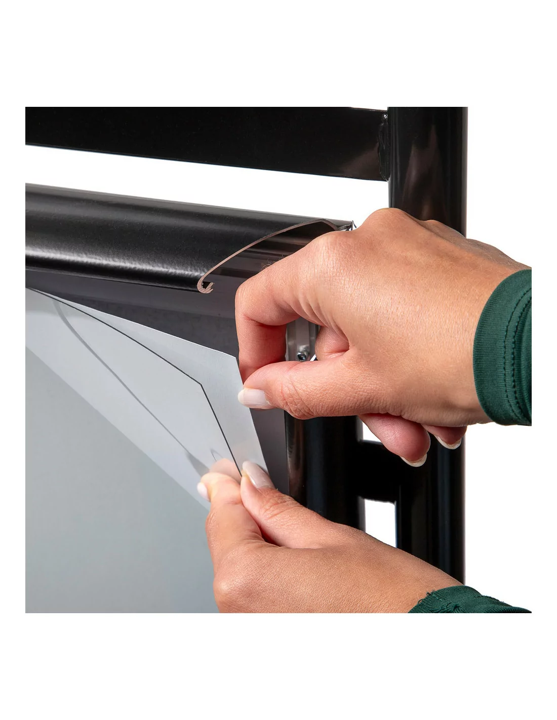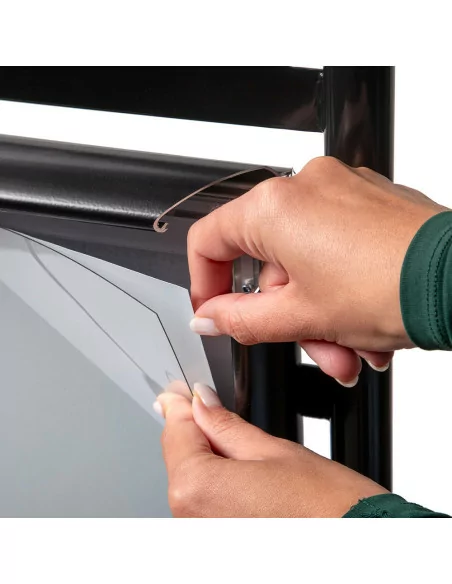 L’espositore Urban risponde all’esigenza di cambi stampa frequenti, motivo per il quale l’operazione di sostituzione della grafica risulta particolarmente semplice e veloce (senza attrezzi).