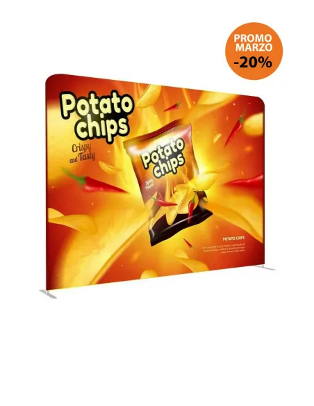 La grafica si installa facilmente inserendosi a "sacco" . La borsa per trasportare questo fondale grafico è in dotazione.Oltre agli espositori configurati in questa pagina è possibile allestire fondali grafici WAVE con altre forme e misure.